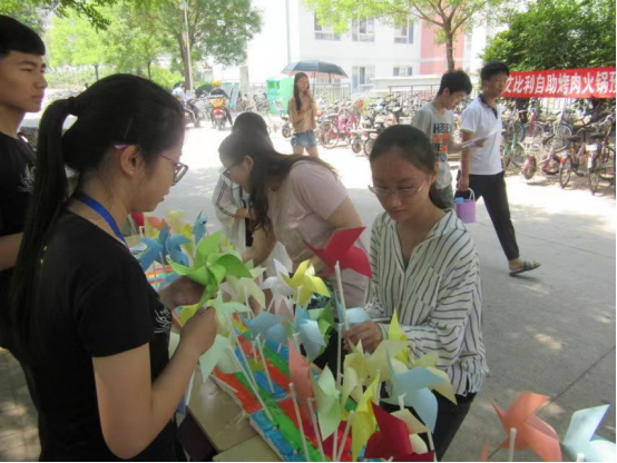 风车告白活动,于5月25日举行,晨曦加油站的工作人员将写有寄语的风车发放给同学,将关爱传递。