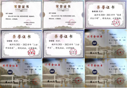 大一学年,徐敬敬便一次性通过了英语四六级、计算机二级考试。她连续三年获评成人网