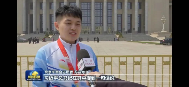 2020级工业工程与管理专业硕士研究生冯益为荣获“北京冬奥会、冬残奥会突出贡献个人”,作为全国获此殊荣的5名学生志愿者之一,参加大会并上台领奖。