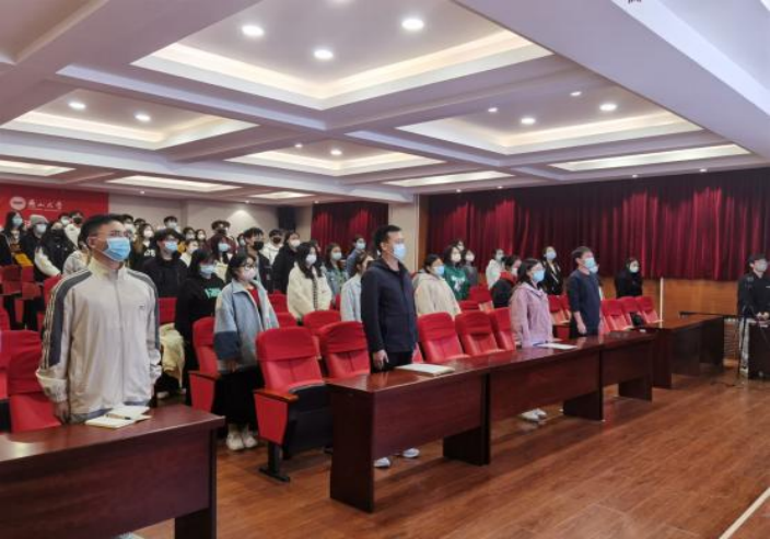 本科生第七党支部书记唱思迪老师、本科生第八党支部书记武永乐老师、2021级本科生辅导员胡小慧老师。本次开班仪式采取腾讯会议线上、线下同步进行的方式,共有300余名党员、发展对象、入党积极分子参加本次活动。
