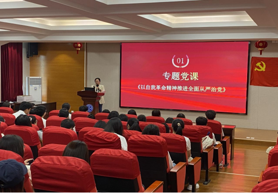 党课凝党心砥砺初心共奋进。为学习贯彻习近平新时代中国特色社会主义思想主题教育,大会第一项,田银双老师开展题为《以自我革命精神推进全面从严治党》的二十大精神专题党课,为全体党员及入党积极分子进行了一次立意深远、思想深刻的专题讲解。新时代10年,我们党不断深化对自我革命规律的认识,不断推进党的建设理论创新、实践创新、制度创新,在构建全面从严治党体系上积累了丰富成果,但如何永葆先进性和纯洁性、如何永远得到人民拥护和支持、如何实现长期执政,是我们党必须回答好、解决好的一个根本性问题。作为青年党员,如何践行“全面从严治党”,除了自身要坚定理想信念,锻造过硬本领外,还要靠党组织从严从实加强教育管理和监督,努力跑好全面从严治党“接力棒”。党课第二部分,田老师带领支部成员进一步学习了习近平总书记在河北视察时的重要讲话精神。
