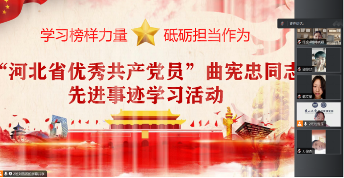 本科生第五党支部组织支部党员在线上举行“河北省优秀共产党员”曲宪忠同志先进事迹学习活动。