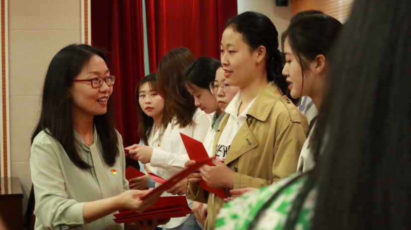 大会第五项:李宁老师宣读学院对2023届毕业生党员们的政治生日寄语。随后,李宁老师、张梦老师为毕业生党员们发放红色礼包。