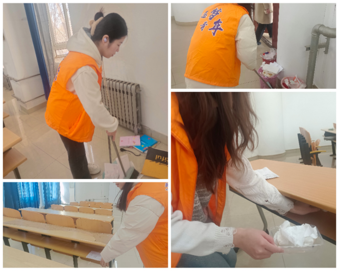 实践活动主要分为两个板块,第一个板块以打扫教室卫生、清理教室杂物、摆放物品为主。支部党员和入党积极分子在成人网