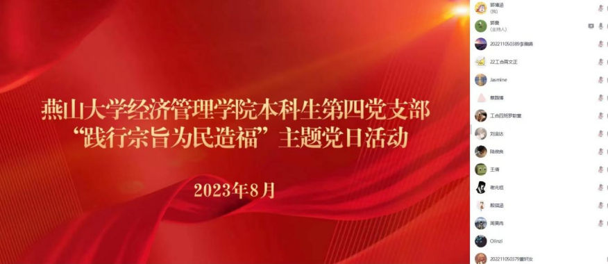 8月12日晚,成人网 本科生第四党支部通过腾讯会议线上召开了“践行宗旨为民造福”主题党日活动。